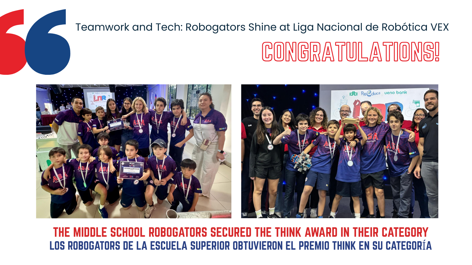 Both the Elementary and Middle School Robogators recently participated in the Liga Nacional de Robótica VEX Finals, where the students showcased their enthusiasm, creativity, and incredible teamwork. The Middle School team's dedication and...