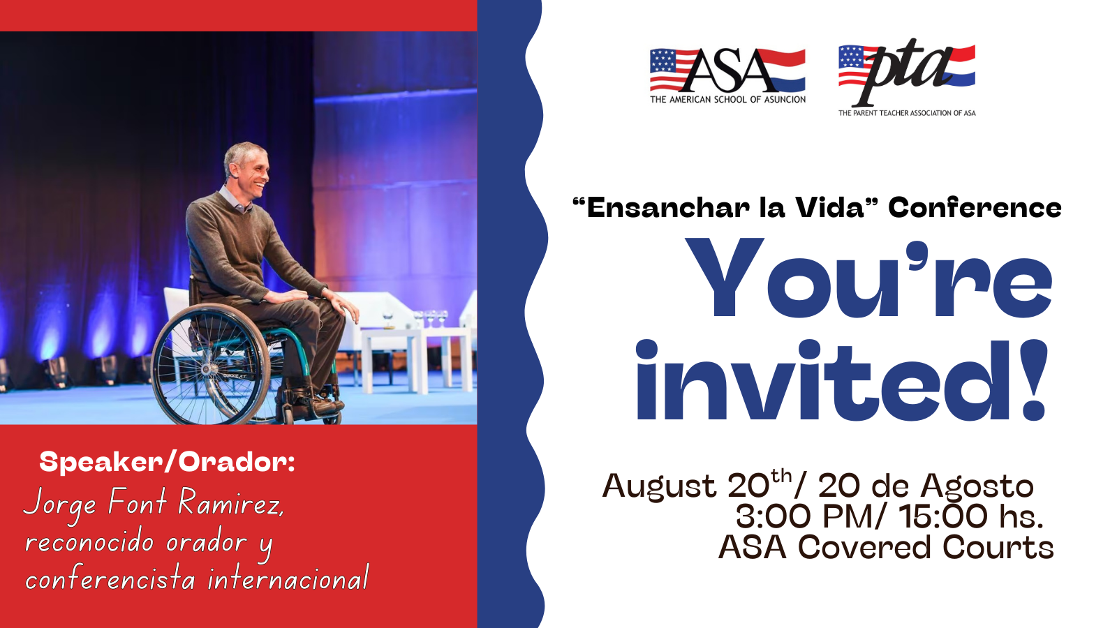 Enriching Your Life Conference with Jorge Font The American School of Asuncion and the PTA are thrilled to invite you to a special conference with guest speaker Jorge Font Ramírez. Join us on August 20th at 3 p.m. for an inspiring talk designed...