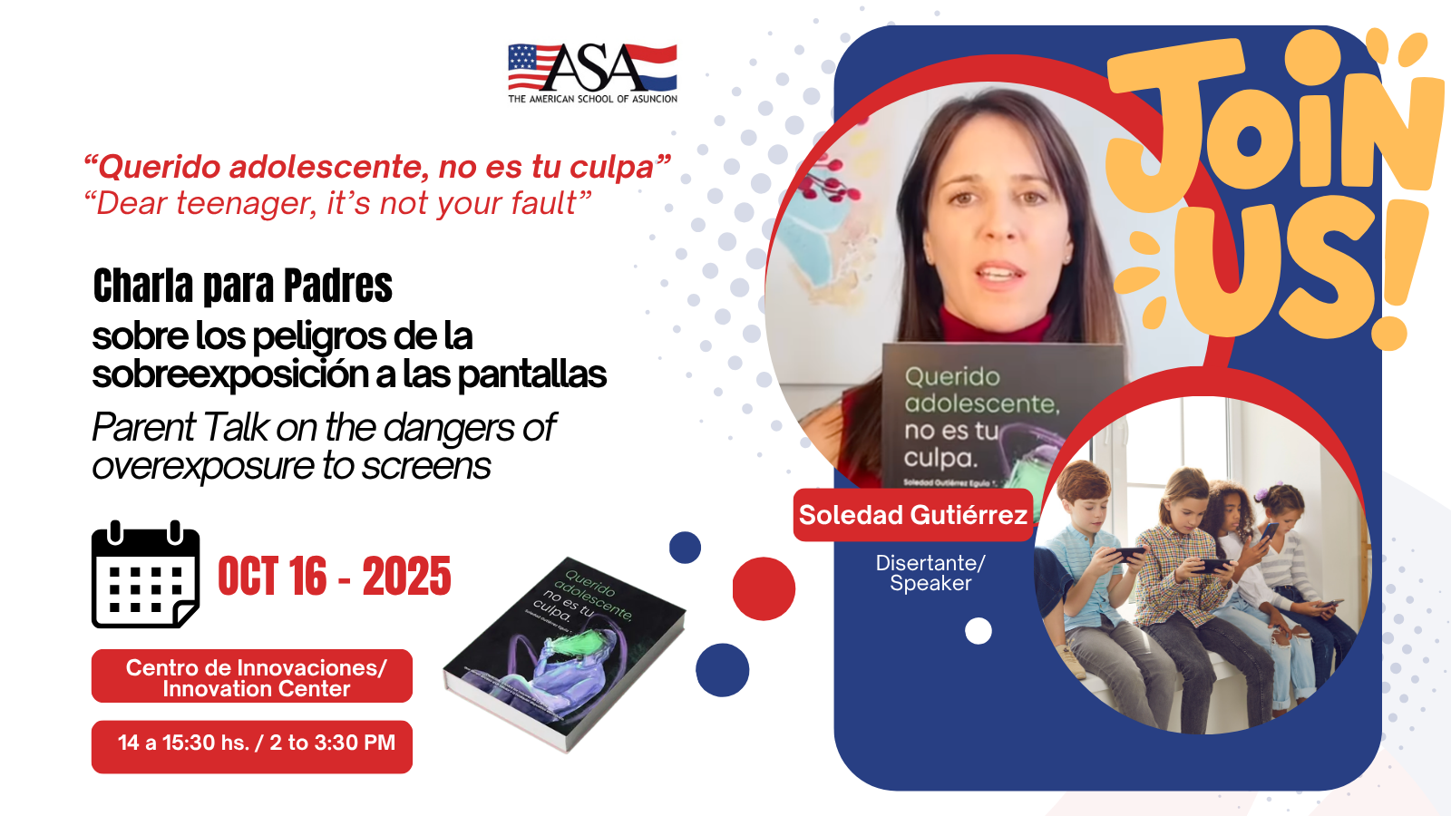 Mark your calendars for an essential talk with author Soledad Gutiérrez on the serious dangers of screen overexposure! Drawing from her book, “Dear Teenager, It’s Not Your Fault,” Ms. Gutiérrez will offer ASA parents...