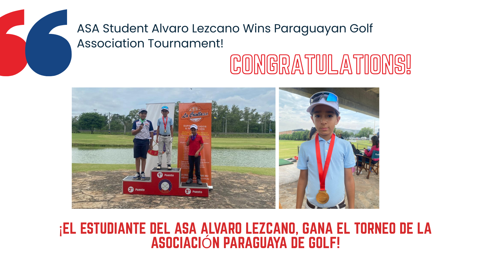 Congratulations to 4ht grade student Alvaro Lezcano for winning a Golf Initiation Tournament organized by the Paraguayan Golf Association! We’re proud to see his dedication and talent shine through on the course. ¡Felicitaciones al estudiante...