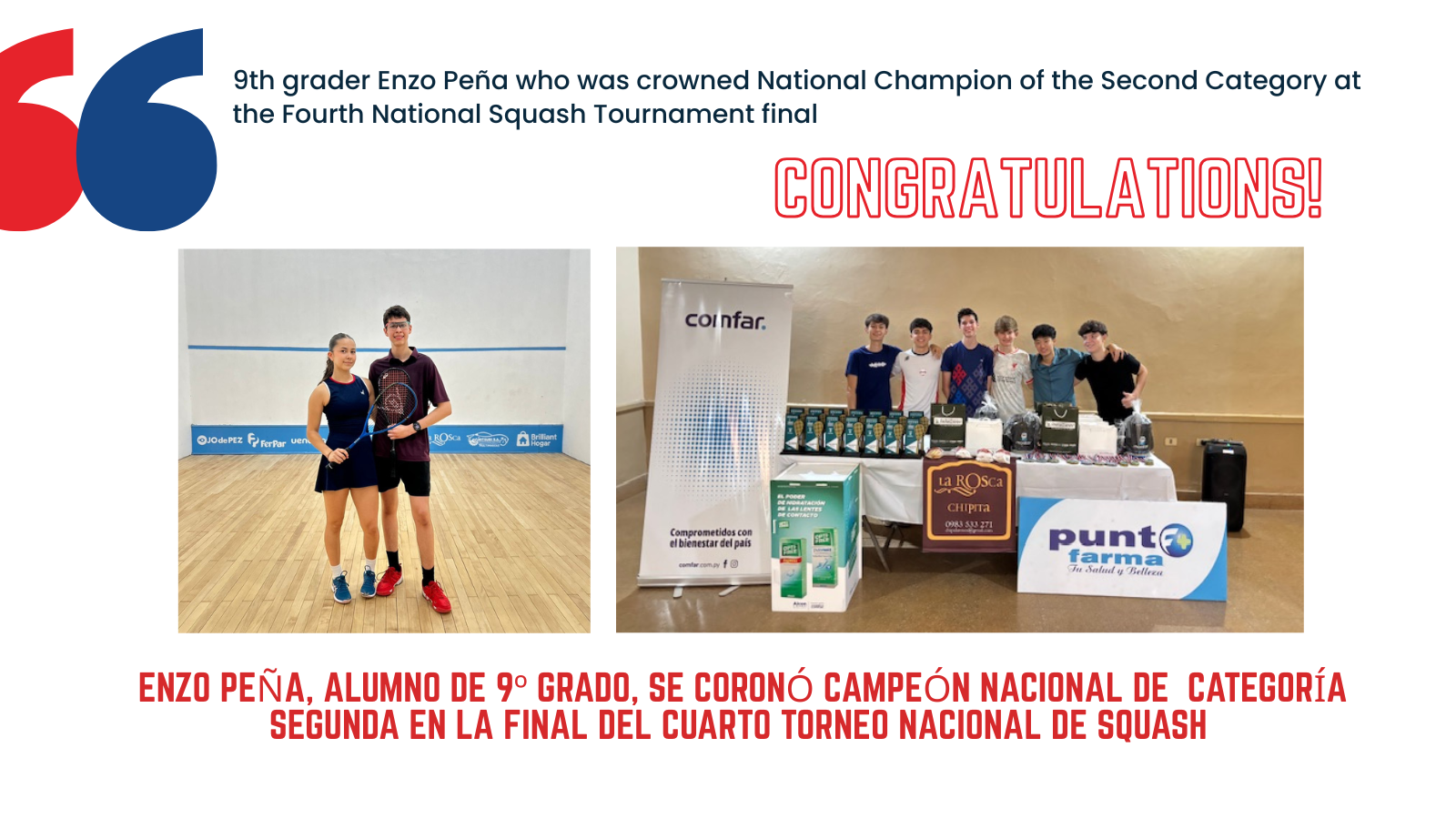 A huge congratulations to 9th grader Enzo Peña who was crowned National Champion of the Second Category at the Fourth National Squash Tournament final on Saturday, October 25th! This victory is especially notable as Enzo, at just 15 years old,...